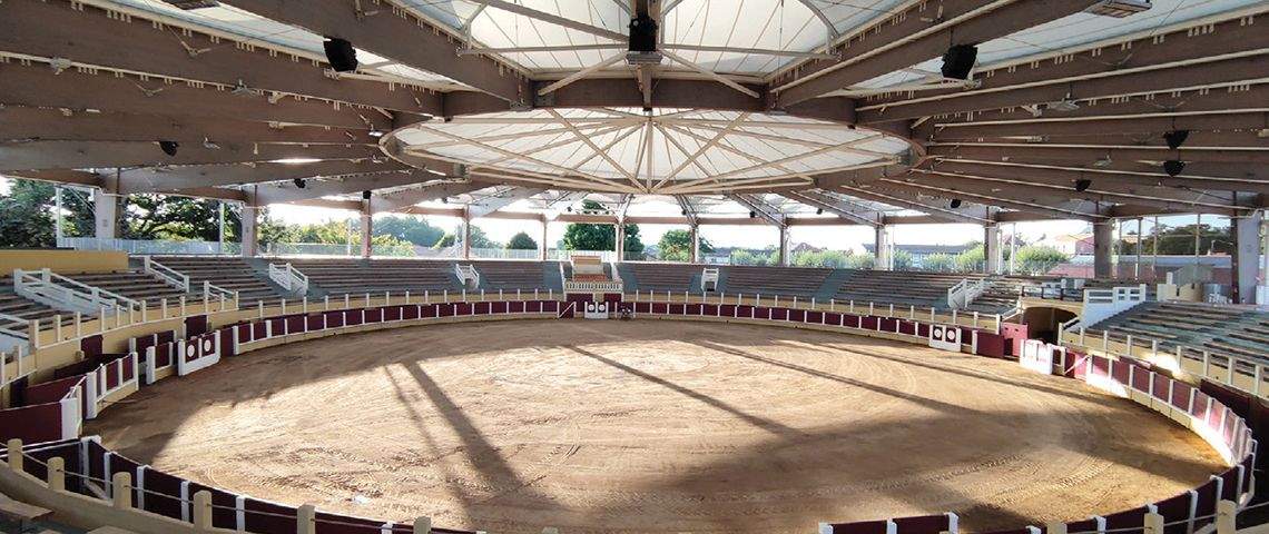 De grandes arènes aux possibilités infinies. La piste centrale de 40 m de diamètre en terre propose également la pose d’un sol modulable en dur, et peut en fonction de votre évènement (concert, sport, spectacle, salon, banquet…) s’aménager pour recevoir jusqu’à près de 3 500 personnes. La couverture des gradins et de la piste offre une utilisation toute l’année.